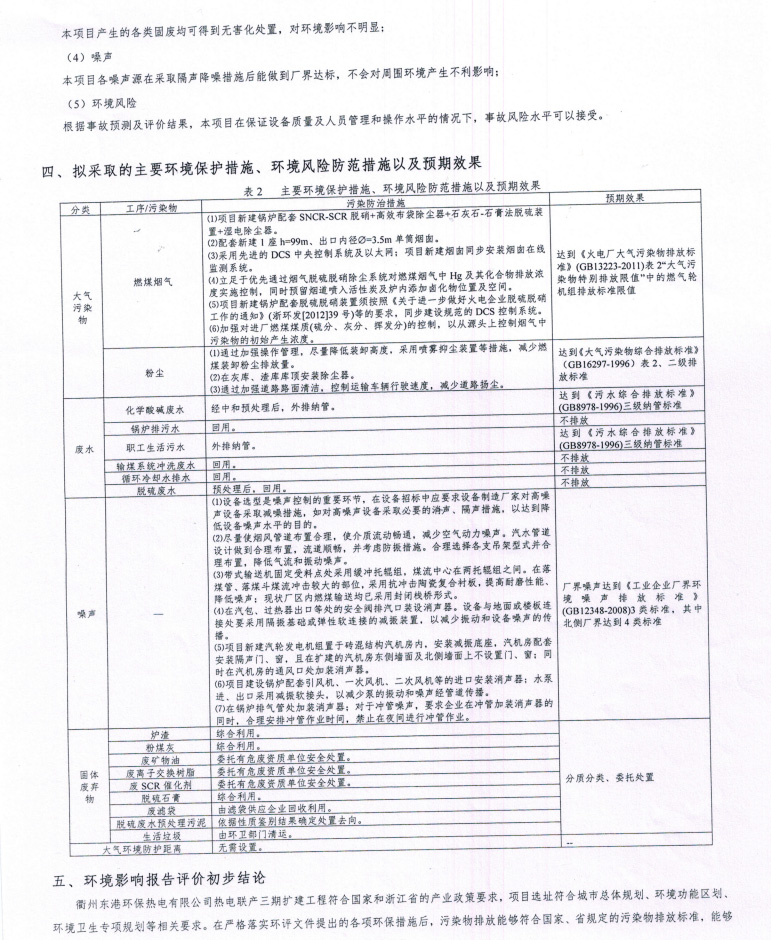 衢州東港環(huán)保熱電有限公司熱電聯(lián)產(chǎn)三期擴建工程環(huán)境影響評價公示